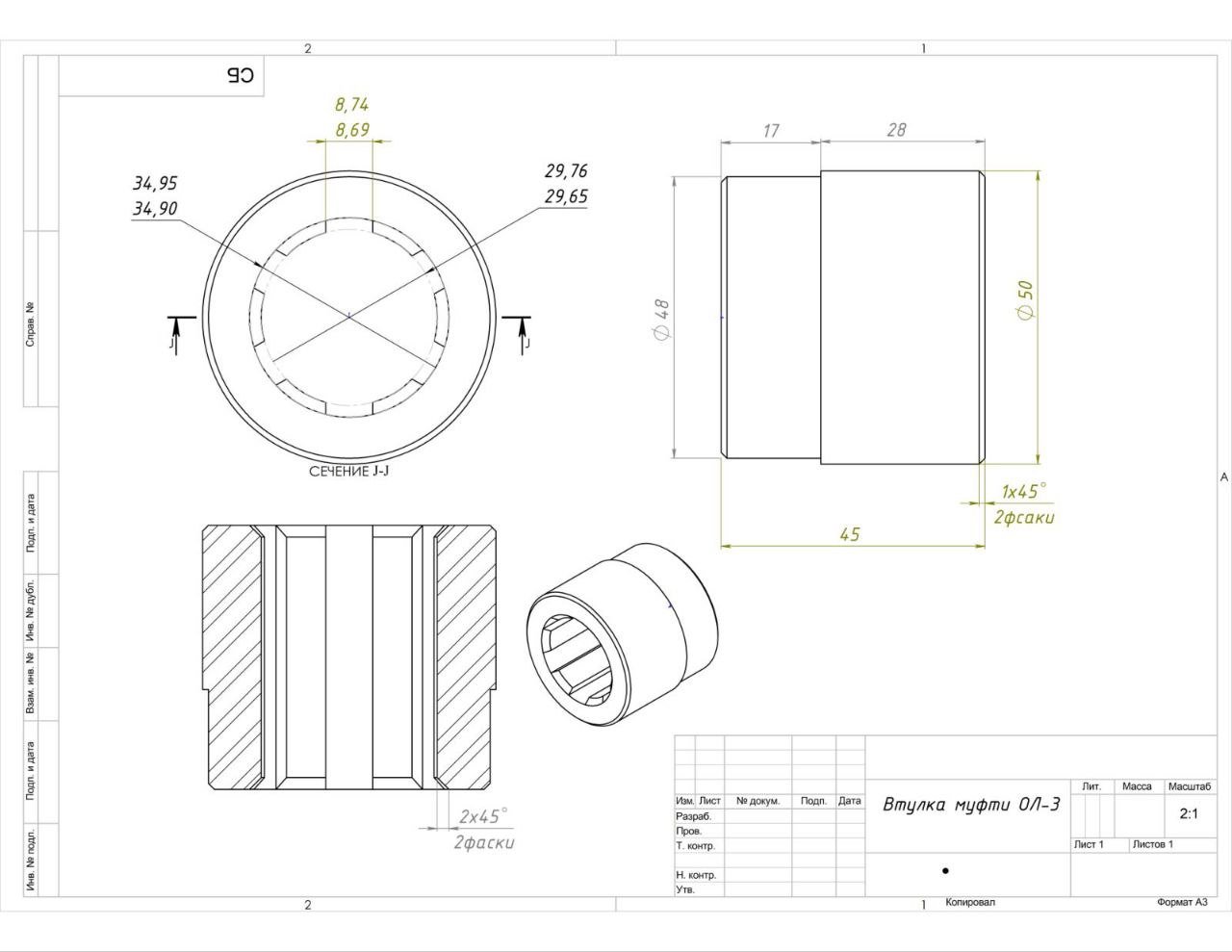 Втулка шліцьова Z6 35/30. Токарка+фрезерування